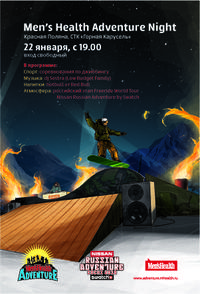 Apre-ski вечеринка на открытом воздухе является главным событием первого приключенческого тура Men’s Health Adventure #1 – фрирайд в Красной Поляне. Men’s Health Adventure – это ряд различных по тематике и географии путешествий, в каждом из которых можно чему-то научиться и испытать себя. Например: фрирайд по целине в Красной Поляне, велопробег по Кубе, треккинг по горам в Перу, обучение кайтбордингу на острове Маврикий и яхтенному делу в Анапе, горный бег в Альпах, сплав на каяках на Коста-Рике и другие.