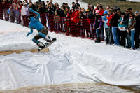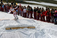 В этот день, несмотря на неприветливую погоду, более 70 красноярцев и гостей нашего города - любителей снега собрались в Фанпарке, чтобы продемонстрировать нам свои зрелищные спуски. Для участия в шуточных костюмированных соревнованиях по преодолению 20-ти метровой лужи нужно было придумать образ встать на лыжи или сноуборд и совершить показательный спуск с горы. Основная задача – это конечно же выйти сухим их воды! Фантазия участников подарила нам очень много удивительных и неповторимых образов! В карнавале приняли участие: веселый пират, невеста, аватар, отмороженный Дед Мороз, Султан, фея, работяга, менеджер среднего звена, бедуин, пасхальный кролик, семья снеговиков, Красная шапочка и серый волк, младенец, медсестра, бешенный апельсин и многие другие.