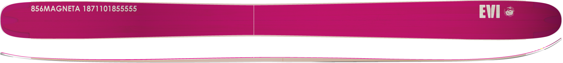 MAGNETA is a wide waisted crossover ski with a lot of sidecut for packed snow while the waist is wide enough to let you float on powder. The ski is fatter but slightly less rockered than the YELLO, but more rockered than BLU. Average flex, fibreglass construction, poplar and ash core
