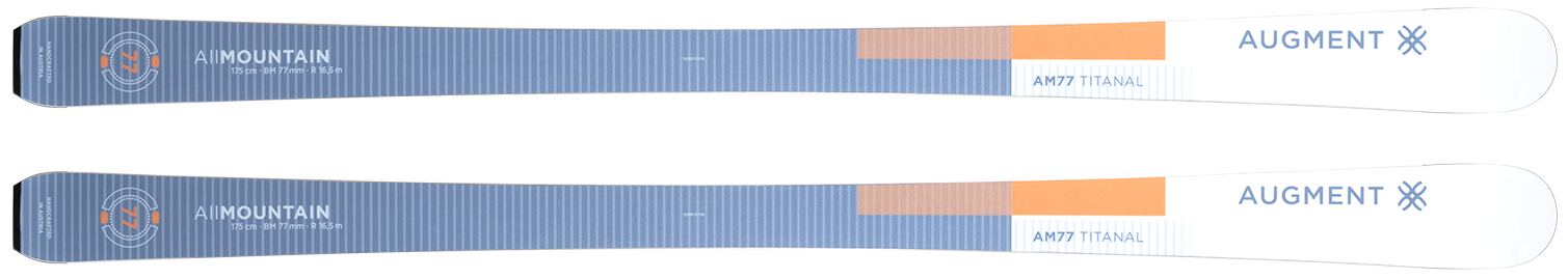 Похожие модели:The AUGMENT All Mountain AM77 is a real SUV (sports utility vehicle) for all mountains. Built to delight all piste-oriented skiers at a full range of speeds. The AUGMENT AM 77 is handcrafted in Austria in our factory with a racing heritage, using full sandwich layup and materials: laminated poplar wood core, full phenomic sidewalls, titanal and prepreg composite layers, racing edges and graphite racing base. Its single radius is sidecut to provide precision and predictability at all speeds. Just select the right length to match your skiing style or use our ski-fitting app to find the best ski lengths and flex. AUGMENT AM77’s width of 77mm under foot provides extra float making the AUGMENT AM77 the perfect ski for the groomed slopes covered with soft snow and for the warm sunny spring days. The AUGMENT AM77 is a fantastic all-mountain ski for your March ski holiday in Courmayeur, Italy. If you are looking for an all terrain ski like the Audi S4, the AUGMENT AM77 is the one for you.