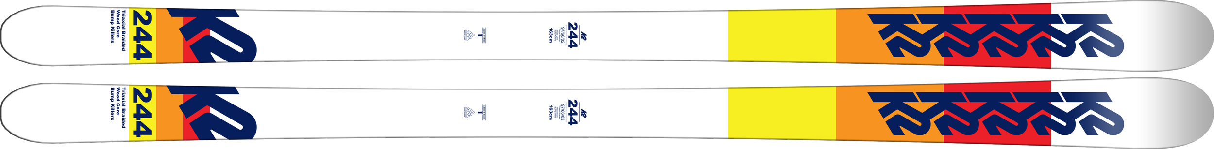 Skinny, short, and quick, the K2 244 is a stout mogul ski specifically designed to rip bumps and throw big airs. Bomber, Duracap construction consisting of an aspen core and full tip-to-tail camber keep the confidence level high when the moguls start to look more like VW Beetles.