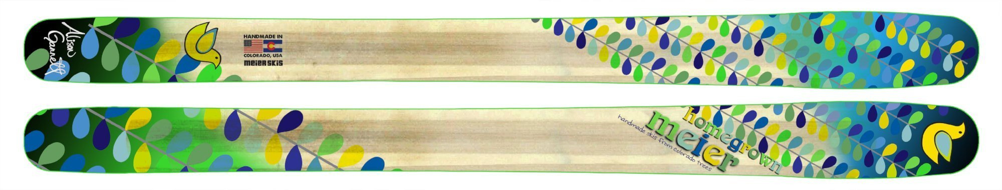 The Homegrown features a fat rockered tip for effortless turns, traditional camber underfoot for turning groomers into pow days, and a straight tail that won't trip you up while schmearing, dumping speed or slaying it in the trees and encountering the occasional death cookie. All of our skis are handmade in Denver, CO at the Meier Craft Skiery and are backed by a 2-Year warranty.