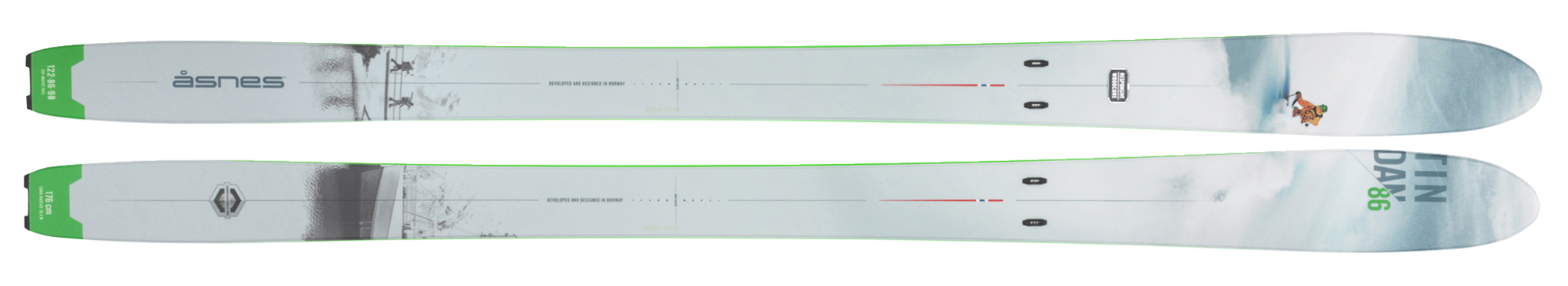 At last, those dream skis: the ones you can use both for long hikes in the pristine spring snow and exhilarating arcs on the groomed powder. The Tindan 86 is a slimmer, lighter and more easy-going version of the Fjøro 92. This is a ski with a classically tensioned wood core and an 18.7 meter turning radius. Lightweight and easy to control, these are a superb choice if you’re after skis equally at home on the tour or putting down turns on the groomers. And although spectacular fun on freshly-prepared snow, these are built with a tip with enough give to handle most conditions on long hikes. These skis are equipped with Skinlock for the instant attachment of the X-Skin Access skin – a short and lightweight climbing skin, perfect for long approaches and moderate terrain, that fits in the jacket pocket. The Access skin is so light that there’s no reason not to take it with you: now you can access that lovely touring terrain you can’t get to from the lift. Cunning!