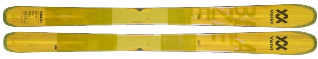 Похожие модели:3 RADIUS SIDECUT Three radii in one ski for maximum turning & speed versatility in all mountain skiing FULL SIDEWALL Direct and strong power transmission with full length sidewalls. TITANAL BINDING PLATFORM A thin Titanal layer (0,3 mm) under the binding delivers the necessary strength to the ski. This way the binding screws offer reliable hold even in the toughest conditions. SUSPENSION TIPS & TAILS Inserts made of elastic TPU material on the edges of the tip and tail which act like a bumper in wind-blown or tracked snow. Its shock-absorbing elasticity ensures better stability and catch-free float. The introduction of the Mantra marked the beginning of Völkl's powerful freeriding ski lines. For those who want to ride free without any restrictions but with the full control of a sportive off-piste ski. The new Blaze series even adds another dimension to the idea. The concept of the ski targets the intuitive freerider who appreciates a playful and at the same time agile and sportive maneouverability. At 106 mm under the binding Blaze 106 weighs only 1772 g (@ 186 length), providing all the lift to make every powder day a dream come true. A just 0.3 mm thick Titanal binding plattform provides direct power transfer and a fast pressure built-up from one edge to another. This gives the ski a most direct response right from the turn initiation. In order to preserve the full flexibility and agility there is intentionally no Titanal included in the tip and the tail. Especially in narrow and rough terrain you will directly benefit from the ski's faster and more direct reaction and with less effort required. The 3D radius sidecut significantly enhances the ski's liveliniess and maneouverability. The Blaze construction targets the short turn-oriented skier but the 3D radius together with the tip to tail Hybrid Multilayer woodcore adapts to basically every riding style. A great new feature is the Suspension Tip which makes its debut in the Blaze series. This elastic rubbery material on the edges of the tip and the tail acts like a bumper everytime the ski gets in contact with the snow in wind-blown or tracked conditions. The shock-absorbing elasticity ensures not only the resistance but also provides great lift off-piste. Völkl also offers Smart Glue adhesive skins tailor-made for each Blaze model.